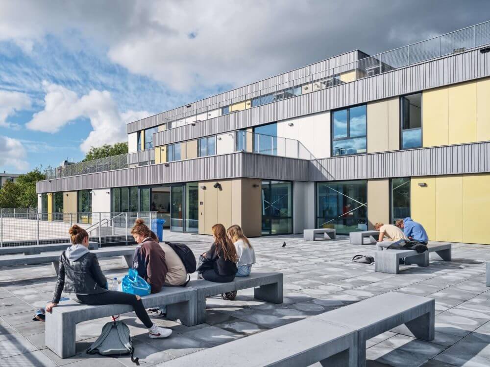Het Leonardo College is een openbare school voor MAVO, HAVO en VWO en een officiële Topsport Talentschool. Het sport- en dansprofiel van de school wordt in een beweeglijke, stoere hoofdvorm vertaald, die aansluit bij de omgeving. De wens is om een deel van de buitenruimte openbaar toegankelijk te maken zodat de buurt er ook gebruik van kan maken.